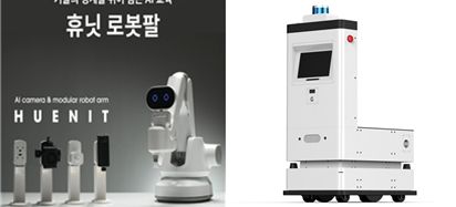 조달청의 '2025 제2차 혁신제품 수출선도형 시범구매' 대상으로 선정된 교육용 로봇(왼쪽)과 자율주행 물류로봇(오른쪽).