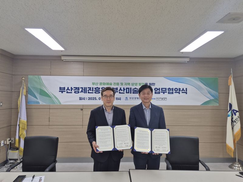 [파이낸셜뉴스] 부산경제진흥원과 부산미술협회는 최근 부산경제진흥원 대회의실에서 지역 경제 산업과 문화예술 간의 상호 협력을 통해 새로운 지역 성장 모델을 창출하기 위한 업무협약(MOU)을 체결했다고 4일 밝혔다.