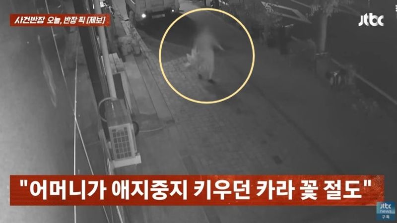 충남 홍성군에서 한밤중 벌어진 화분 절도 사건의 CCTV 영상이 공개됐다. /사진=JTBC '사건반장' 캡처