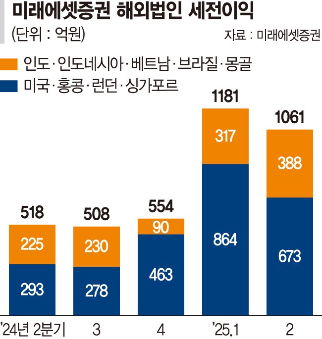 회사 관계자는 "미래에셋증권은 2007년부터 글로벌 시장에 진출해 국가별 특성에 맞춘 현지화 전략을 추진해왔고, 그 결과 해외 법인의 수익성이 크게 개선됐다"고 설명했다.