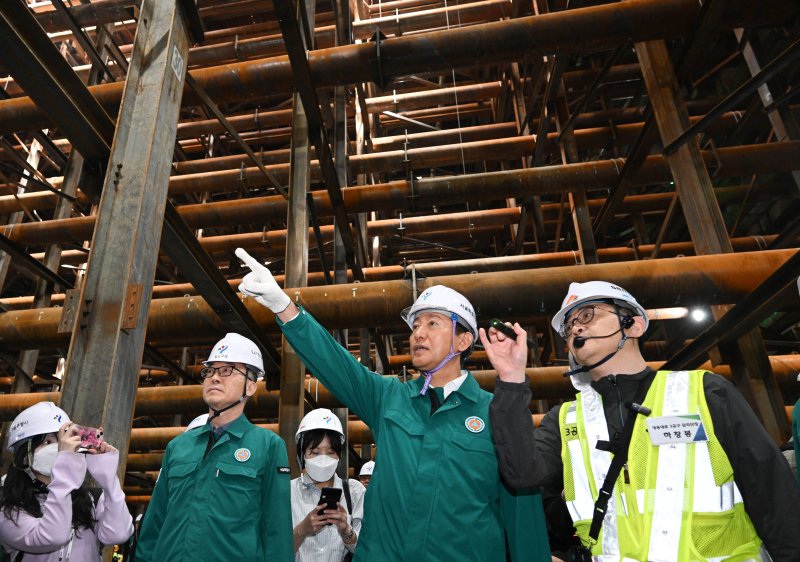 오세훈 서울시장이 지난 4월 23일 서울 강남구 영동대로 지하공간 복합개발 건설공사 현장을 찾아 안전시설 및 경보체계를 점검하고 있다. 공동취재단 제공