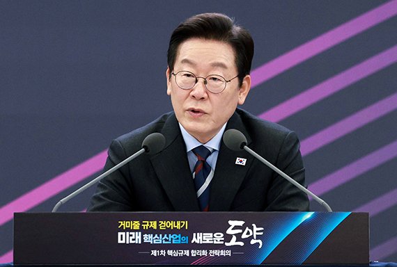이재명 대통령이 15일 열린 제1차 '핵심 규제 합리화 전략회의'에서 "규제완화와 관련해 정부가 신속하게 결정하는 것으로 하고, 그 책임은 정부가 지도록 하겠다"고 강조했다. 자율주행 실증 지역이 부족하다는 지적에 대해서도 "지방 도시 하나를 통째로 자율주행 규제 샌드박스로 지정하자"고 제안했다.