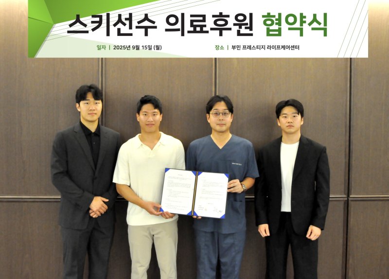 부민병원그룹(이사장 정흥태)은 지난 15일 부민 프레스티지 라이프케어센터에서 알파인 스키 국가대표 홍동관, 이한희, 신정우 선수와 공식 후원 계약을 체결했다고 18일 밝혔다.