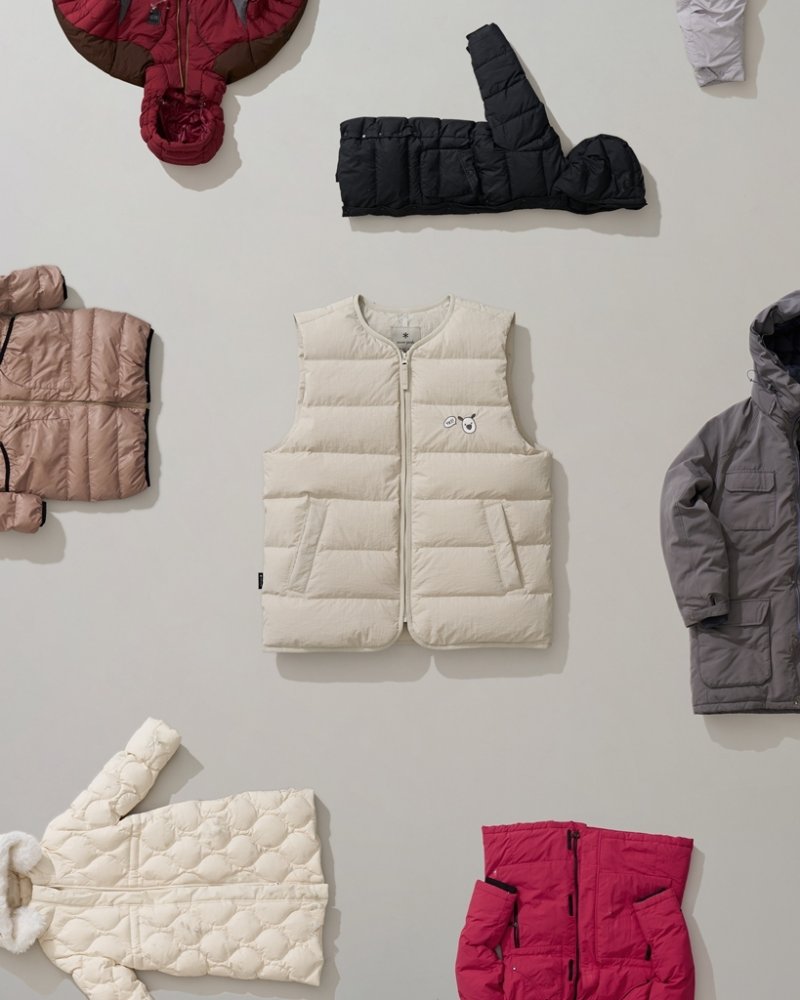현대백화점은 고객들이 기부한 패딩 제품에서 확보한 덕·구스 충전재 360㎏을 활용해 스노우피크의 운영사인 감성코퍼레이션과 협업해 '흰디 업사이클 다운 베스트'를 제작했다.