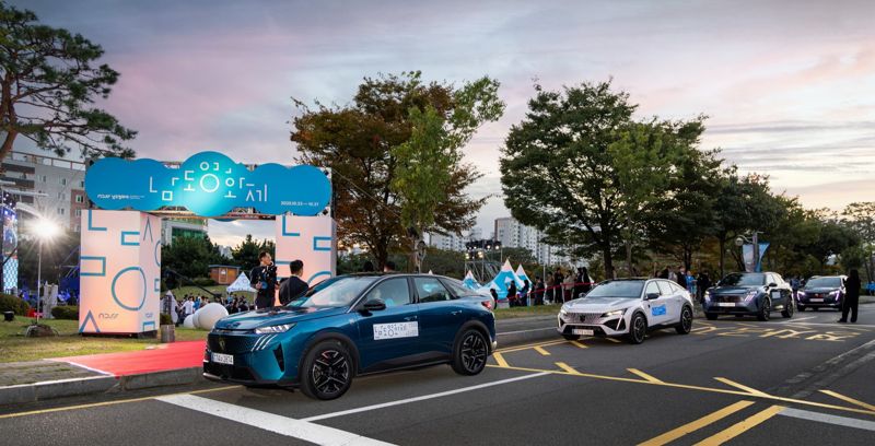 지난 23~~27일 전남 광양에서 열린 '남도영화제 시즌2'에서 푸조 차량이 도로에 주차해 있다. 사진=스텔란티스코리아 제공