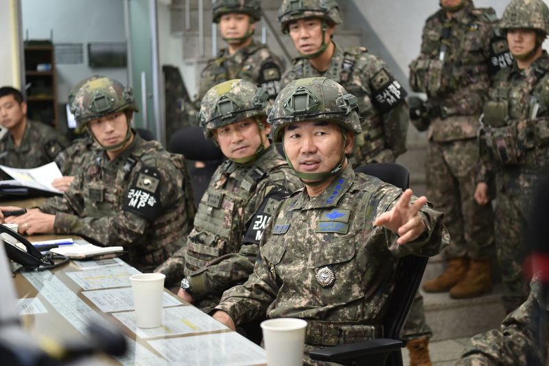 27일 진영승 합참의장이 육군1사단 GOP를 방문해 현장지도를 하고 있다. 합참 제공