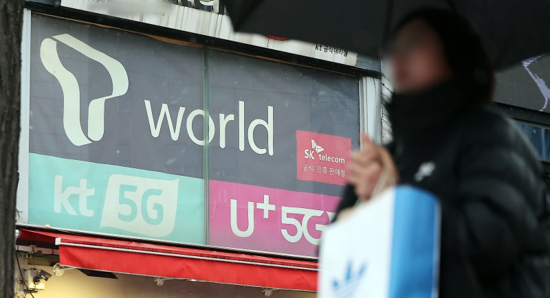 서울의 한 휴대폰 매장 앞으로 시민이 지나가고 있다. 뉴스1