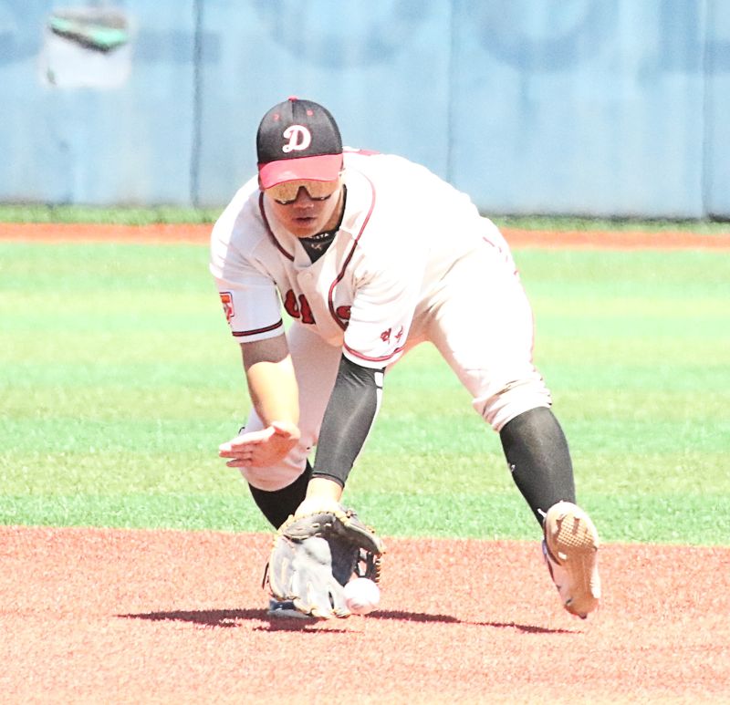 덕수고 3학년 엄준상이 청룡기에서 수비를 하고 있다.사진=전상일 기자