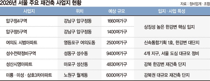 서울 핵심 정비사업장들이 잇따라 속도를 내면서 내년 시공사 수주전도 치열할 전망이다. 특히 압구정과 여의도, 성수전략정비구역 등 사업성 높은 사업장들이 연이어 수주시장에 나올 것으로 예상되며 건설사들의 빅뱅이 예고된다.