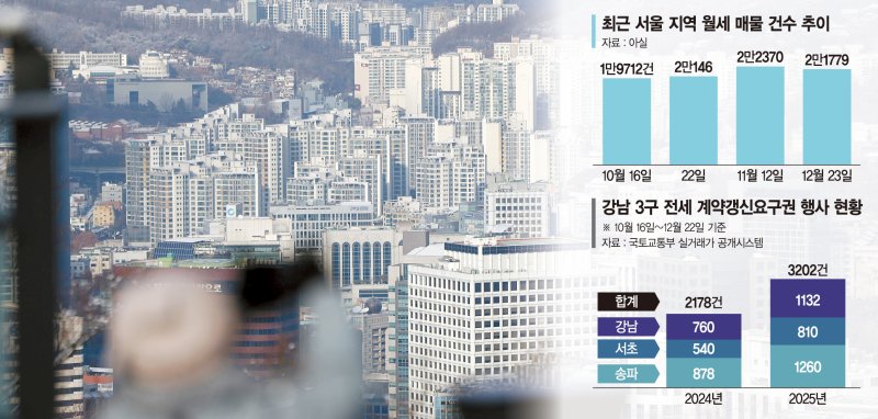 정부의 10·15 부동산 대책 발표 이후 서울 지역 월세 매물이 빠르게 늘어난 반면 거래량은 오히려 감소한 것으로 나타났다. 종합부동산세 부담 등으로 월세를 높이는 임대인이 늘고 있지만 가격부담을 느끼는 세입자들이 쉽게 계약을 체결하지 못하는 것으로 해석된다.