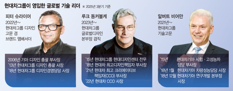 지난해 11월 말. 당시 만프레드 하러 현대차그룹 차량개발담당 부사장은 프랑스 현지에서 제네시스 GV60 마그마를 개발한 기술진들을 소개한 자리에서 팀 리더로서 이같이 말했다. 이후 한달도 지나지 않아 하러 부사장은 사장으로 승진, 현대차그룹 연구개발(R&D)본부장을 맡아 현대차그룹의 R&D를 이끌고 있다. 지난 2024년 현대차그룹에 합류한 이후 R&D본부 차량개발담당 부사장으로서 차량의 기본 성능 향상을 주도한 하러 사장은 전기차 시대로의 전환 과정에서 현대차에 새로운 전동화 기반을 구축했다는 평가를 받는다. 이처럼 하러 사장 외에 현대차그룹으로 영입된 많은 글로벌 기술 리더들이 중요한 변곡점 마다 현대차 프리미엄을 쌓아올리는데 큰 역할을 해냈다는 분석이다.