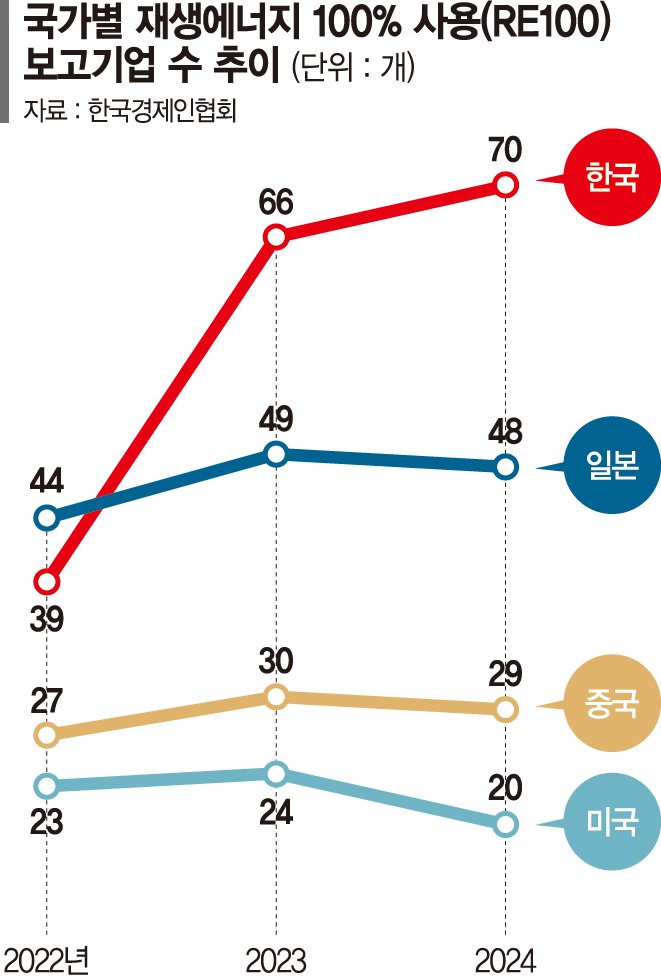 이상호 한경협 경제산업본부장은 "글로벌 투자기관이 기업의 탄소배출 저감 노력을 주요 평가 기준으로 삼는 추세"라며 "국내 기업들이 국제 경쟁력을 유지하면서도 실질적인 RE100 이행이 가능하도록 정부의 정책적 뒷받침이 필요하다"고 말했다.
