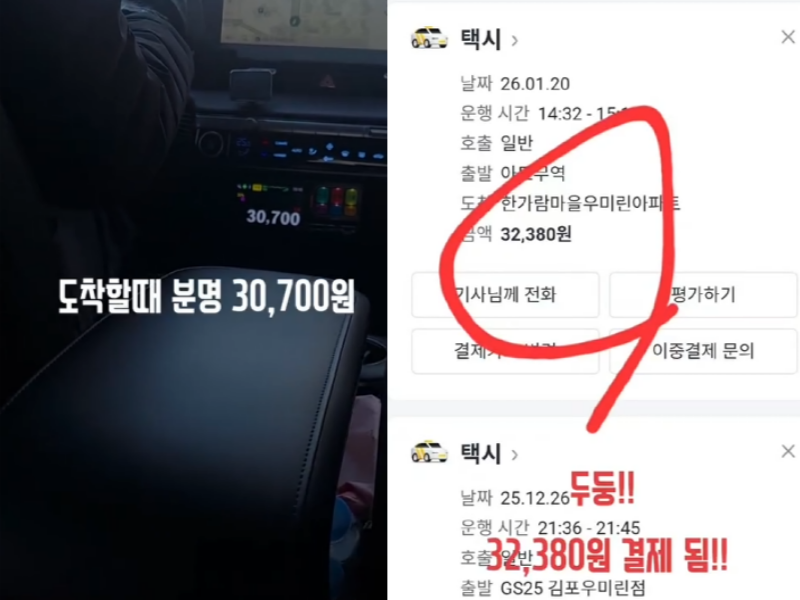 그외 "기사에게 연락해 왜 더 결제됐냐고 물었더니 '실수로 잘못 눌렀다'고 하더라", "500원, 1000원 정도가 큰 돈은 아니지만 사기 당하는 기분", "미터기 요금 확인하고 내리려하니 빨리 내리라고 독촉하더라"는 댓글도 달렸다.