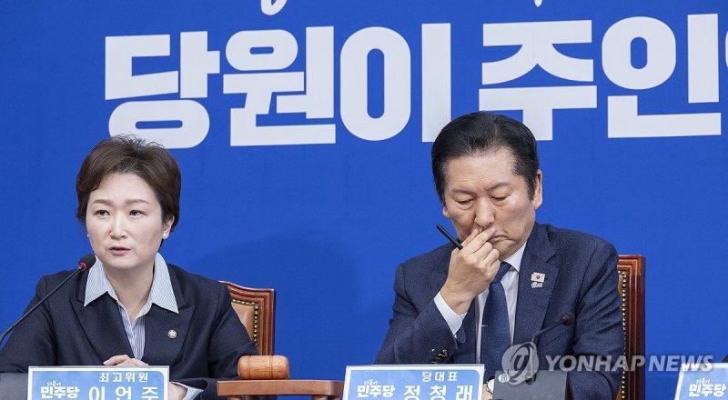 더불어민주당 최고위원회의 (출처=연합뉴스) (서울=연합뉴스) 오규진 기자 = 더불어민주당은 10일 의원총회를 열어 조국혁신당과 합당 등 당내 현안과 관련한 의견 청취에 나선다.