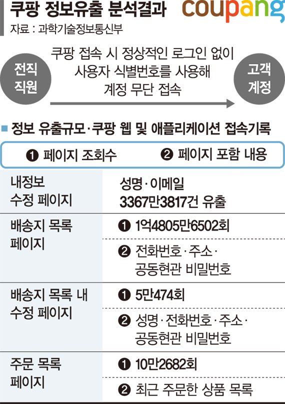 개인정보 탈취에 악용된 전자 출입증 서명키가 쿠팡 개발자 노트북에 저장되고, 퇴사한 직원 서명키 사용이 가능할 정도로 쿠팡의 보안관리체계는 허점투성이였다. 쿠팡이 내부 보안에 손을 놓은 사이 공격자는 이용자 본인의 주소, 공동현관 비밀번호뿐 아니라 가족·친구 등 제3자 성명, 전화번호, 배송지 주소 등을 자유자재로 들여다봤다.