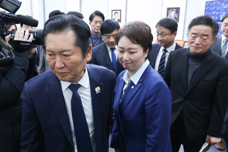 정청래 더불어민주당 대표가 10일 서울 여의도 국회에서 조국혁신당과의 합당에 대한 결과를 발표한 후 당대표실을 나서고 있다. 2026.2.10 ⓒ 뉴스1 신웅수 기자 (서울=뉴스1) 서미선 기자 = 더불어민주당과 조국혁신당의 합당이 불발로 끝나면서 6월 지방선거 이후에 범여권 통합이라는 큰 그림을 다시 그릴 수 있을지 관심이 모인다.