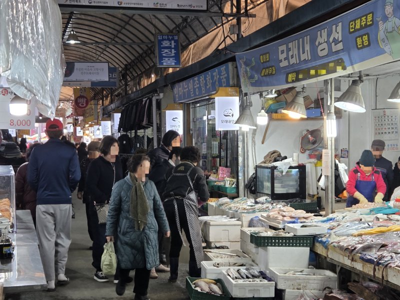 좁은 시장 골목길은 물건을 실어 나르는 상인들과 장바구니를 나눠 든 고객들로 붐볐다. 커다란 수레를 끌고 장을 보는 이들도 눈에 띄었다. 손이 큰 고객들이 등장하자 상인들의 목소리도 덩달아 커졌다. "고등어도 있어! 새우는 2만원" "싸게 줄 테니께 보고 가" 장바구니를 든 발길이 이어질수록 상인들의 호객 소리도 힘을 더했다.