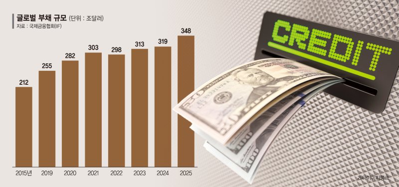 지난해 전 세계 부채가 348조달러(약 49경6000조원)로 사상 최대치를 기록했다. 국방비 확대와 인공지능(AI) 투자 증가가 정부 지출을 끌어올리면서 연간 증가 폭도 코로나19 팬데믹(세계적 대유행) 이후 최대 수준을 경신했다. 정부 부채 부담은 계속 커지고 있다는 경고가 나온다.