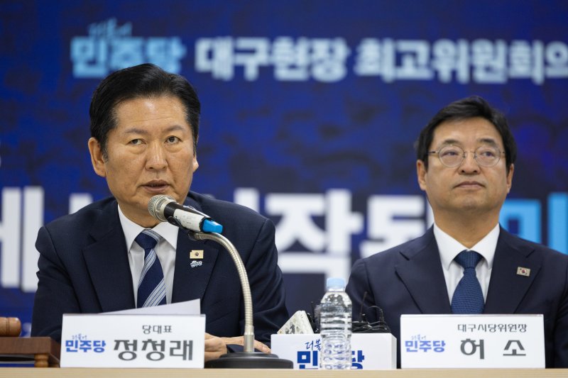 정청래 민주당 대표는 이날 대구에서 열린 현장최고위원회의에서 "이재명 대통령이 지역에 1년에 5조원, 총 20조원을 지역에 투입하고 각종 특례조항을 적용해 여러 권한을 줘 대구·경북 시도민들을 잘 살게 해주겠다고 하는데 정작 이 지역 국회의원들은 왜 반대하나"라며 "국민의힘 법사위원과 장동혁 대표, 송언석 원내대표 일단 석고대죄하고 대국민사과 하라"고 촉구했다.