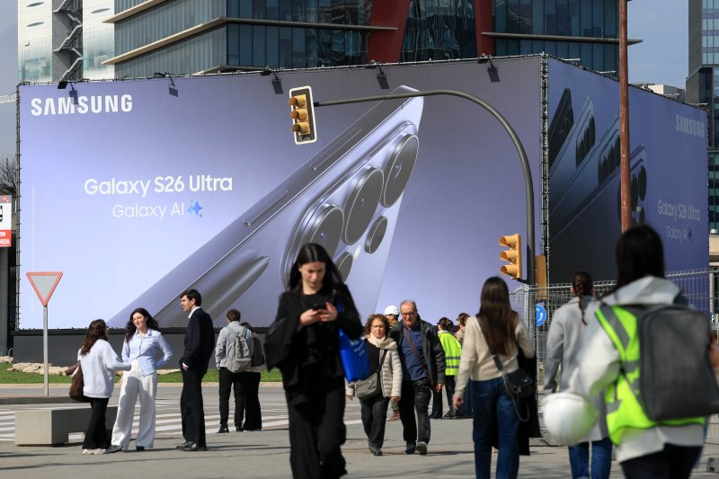 2일(현지시간) 스페인 바르셀로나에서 개막한 세계 최대 이동통신 전시회 '모바일월드콩그레스(MWC) 2026' 전시장 인근에 설치된 삼성전자 갤럭시 S26 울트라 광고판 앞을 사람들이 지나가고 있다. 올해 MWC는 SK텔레콤, KT, LG유플러스, 삼성전자, SK하이닉스, LG전자, 벤처·스타트업 등 한국 기업 182개사가 참가했다.