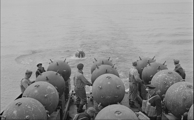 [서울=뉴시스] 핀란드가 ‘2차 소련-핀란드 전쟁(1941∼4)’ 기간 핀란드만에 선박을 이용해 기뢰를 투하해 부설하고 있다.(출처: 위키피디아) 2026.03.11. *재판매 및 DB 금지 [서울=뉴시스] 구자룡 기자 = 이란이 호르무즈 해협 봉쇄를 위해 기뢰 부설에 나선 것으로 알려지면서 ‘기뢰’가 이란 전쟁의 초점으로 떠올랐다.