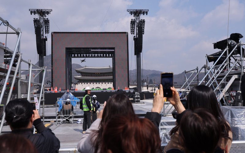 지난 20일 서울 종로구 광화문광장에서 공연 준비가 진행되고 있다. 뉴시스