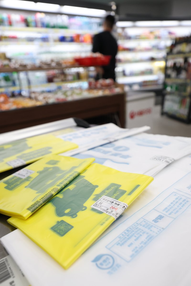 종량제봉투 사재기 벌어질라 중동사태 영향으로 비닐과 플라스틱 원료가 되는 나프타 등 석유화학 제품 수급에 비상이 걸렸다. 24일 서울시내 한 마트에 판매 중인 다양한 크기의 종량제봉투. 연합뉴스