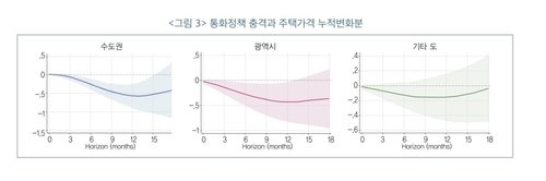 장 선임연구위원은 "통화정책 충격에 수도권 주택가격이 가장 크고 유의한 영향을 받는 것은 수도권의 높은 주택가격과 차주당 부채 규모로 인해 금리 상승에 대한 부담이 상대적으로 크기 때문"이라고 설명했다.