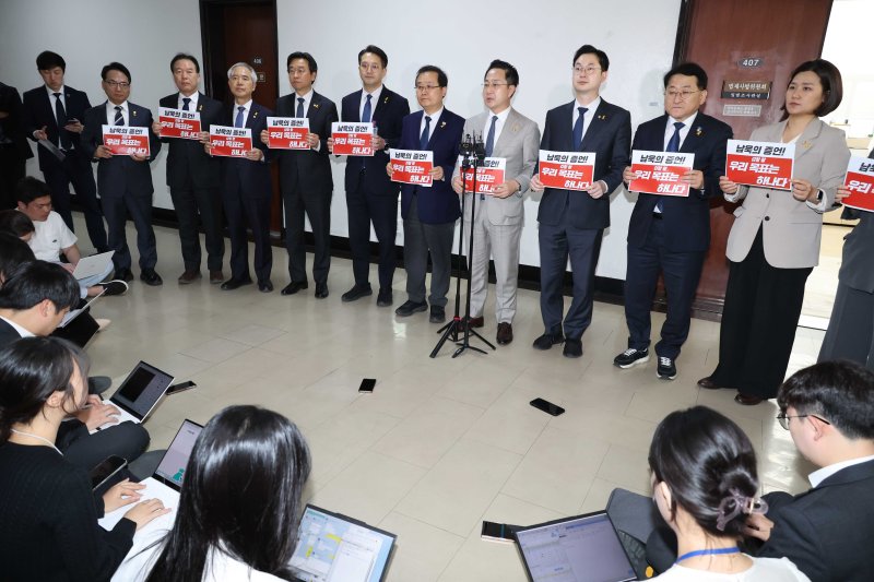 [서울=뉴시스] 조성봉 기자 = 박성준 더불어민주당 의원이 16일 오후 서울 여의도 국회 법사위 회의실 앞에서 열린 ‘남욱-송경호 증언’ 관련 내용조작기소 국조특위 민주당-조국혁신당-진보당 긴급브리핑에서 발언을 하고 있다. 2026.04.16. suncho21@newsis.com [서울=뉴시스] 한재혁 김윤영 기자 = 국회 윤석열 정권 정치검찰 조작기소 의혹 사건 진상규명 국정조사특별위원회(국조특위) 소속 더불어민주당·조국혁신당·진보당 의원들은 17일 "윤석열 정권의 대장통 수사팀 교체는 법리가 아닌 정적 제거에 그 목적이 있었다"며 특검을 통해 책임을 묻겠다고 했다.