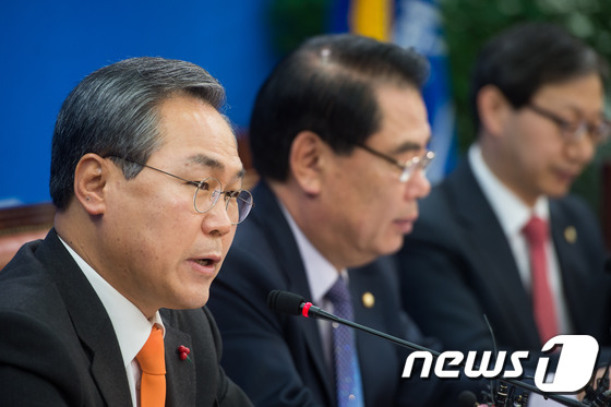(서울=뉴스1) 박정양 기자,서미선 기자 = 우윤근 새정치민주연합 원내대표는 15일 오전 예정된 여야 지도부의 '2+2 회동'과 관련해 "정개특위와 개헌특위를 구성해 정치개혁과 헌법개정 논의를 바로 착수해야 한다"고 밝혔다. 우 원내대표는 이날 국회에서 열린 정책조정회의에서 "일련의 국정농단 의혹은 제왕적 대통령제 폐해를 여실하게 드러내는 것"이라며 이 같이 말했다...