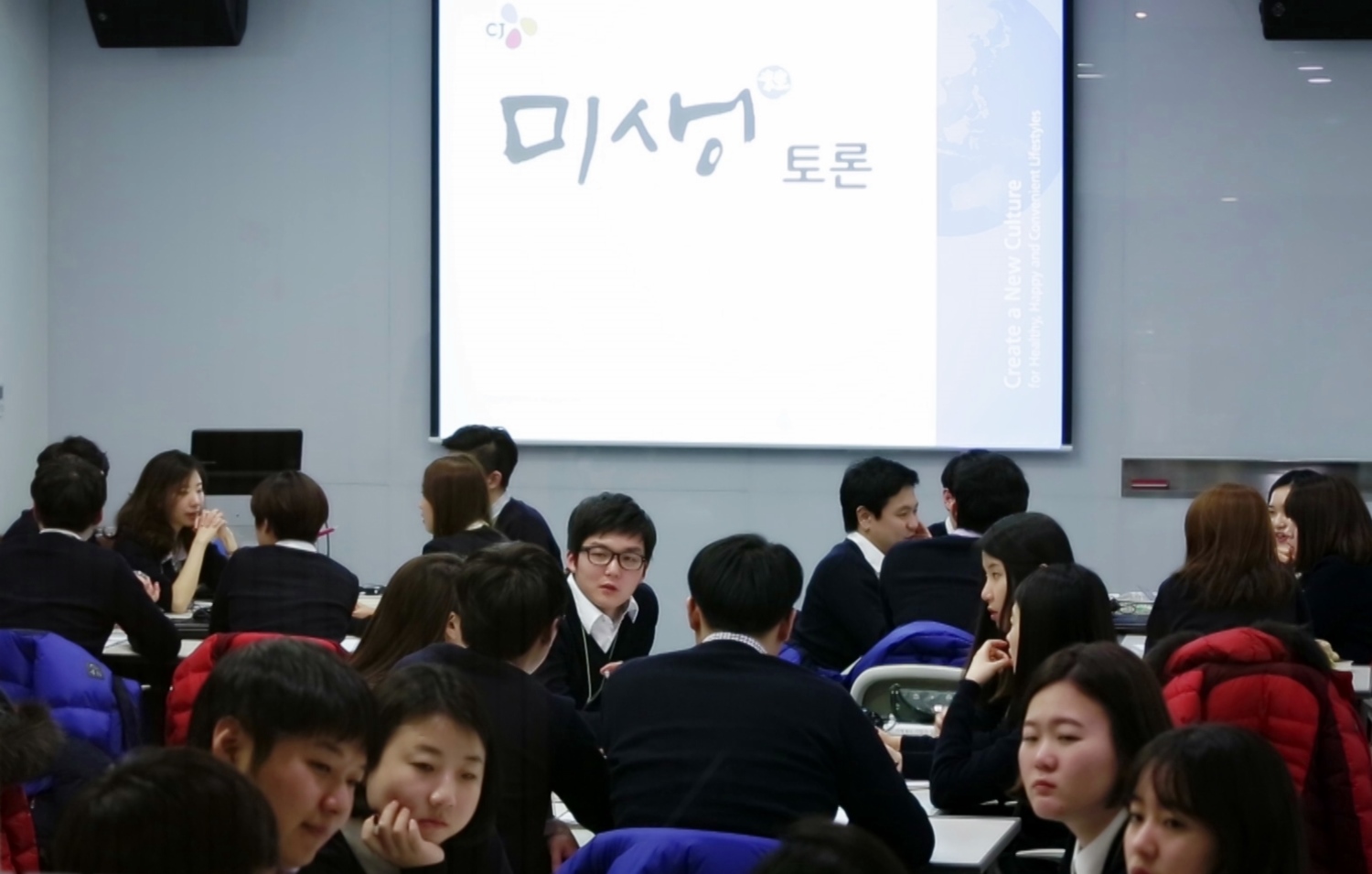 CJ그룹의 2014년 하반기 공채 신입사원들이 제주도 입문 교육에서 미생 토론 수업에 참여하고 있다. 인기 드라마 '미생'이 생생한 직장 생활의 교과서로 재탄생한다. 12일 CJ그룹은 드라마 '미생' 콘텐츠를 활용한 임직원 대상의 교육 프로그램을 개발, 실시한다고 밝혔다. 신입사원 입문 교육은 물론 과장과 팀장 등 신규 승급자, 임원 등 각 직급별 특성에 맞춘 교육 과정으..