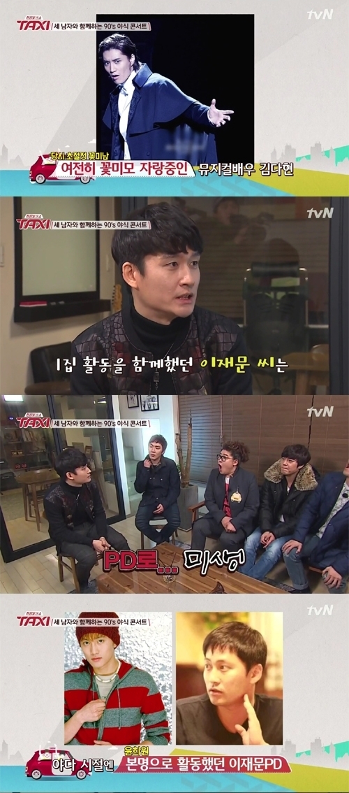 ‘야다’ 미생의 이재문 PD가 과거 록밴드 야다의 멤버인 사실이 알려졌다. 1월 13일 밤 방송된 tvN ‘현장토크쇼 택시’는 ‘90`s ICON 특집 3탄’으로 꾸며진 가운데 가수 The 포지션 임재욱과 플라워 고유진이 출연해 화려한 입담을 선보였다. 이날 MC들과 게스트들은 전인혁의 작업실을 깜짝 방문해 야다 멤버들의 근황에 대해 질문했다. 이에 전인혁은 “뮤지컬 쪽에선 김..
