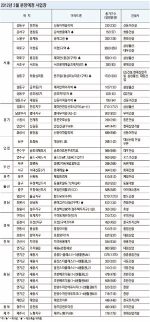 2012-02-22 17:14:36봄 성수기를 맞는 3월 전국 분양시장의 열기가 뜨거울 것으로 예상된다. 올봄 서울의 알짜 재개발·재건축 사업장뿐만 아니라 지방 인기 지역을 중심으로 분양 예정물량이 풍부하기 때문이다. 특히 정부기관 이전을 앞둔 세종시에서 7곳의 분양이 예정돼 있어 지난해에 이어 청약 열풍을 이어갈 것으로 기대된다. 그러나 전문가들은 알짜 분양물량이라도 '묻지마 청약'에 나..