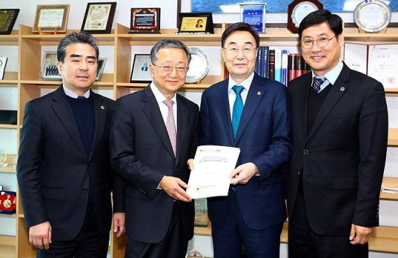 [제주=좌승훈기자] 제주도의회 고충홍 의장은 31일 오전 국회 헌법개정·정치개혁특별위원회(위원장 김재경·자유한국당)를 방문, 오는 2월 7일 국회 본회의에서 도의회 의원 2명 증원을 위한 선거구 획정안 처리될 수 있도록 힘을 실어 줄 것을 요청했다. 이날 국회 방문에는 제주도의회 고용호 더불어민주당 원내 대표와 김용범 보건복지안전위원장..