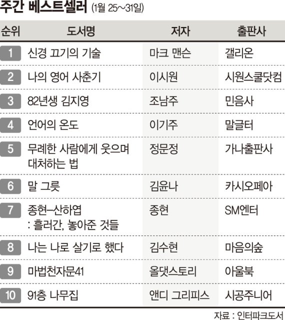주간 베스트셀러 (1월 25~31일)