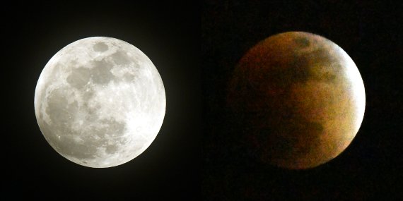 31일 밤 개기월식이 시작되기 전 서울 하늘 위로 뜬 '슈퍼문'(왼쪽)과 개기월식으로 달이 붉게 변하는 '블러드문'/사진=서동일 기자tekken4@fnnews.com 서동일 기자