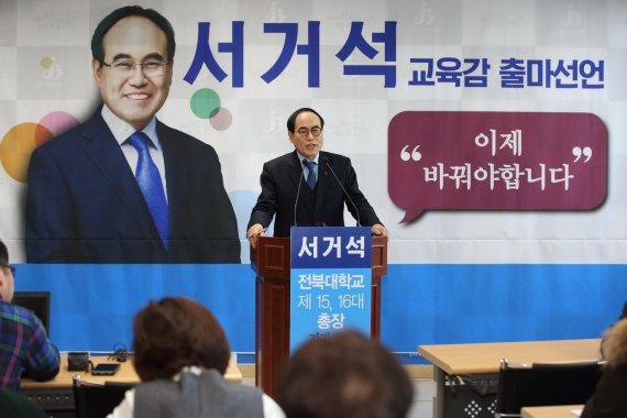【전주=이승석 기자】서거석 전 전북대 총장이 오는 6월 치러지는 전북 교육감 선거출마를 공식 선언한 가운데 장관급 교육행정 경험을 바탕으로 ‘발로 뛰는 교육감’을 내세우며 본격 세몰이에 나섰다. 서 전 총장은 31일 보도자료를 통해 “우리 아이들을 위한 일이라면 중앙정부와 지자체 등을 가리지 않고 발로 뛰는 전북교육감이 될 것”이라고 밝혔다. 그는 “자체 사업..