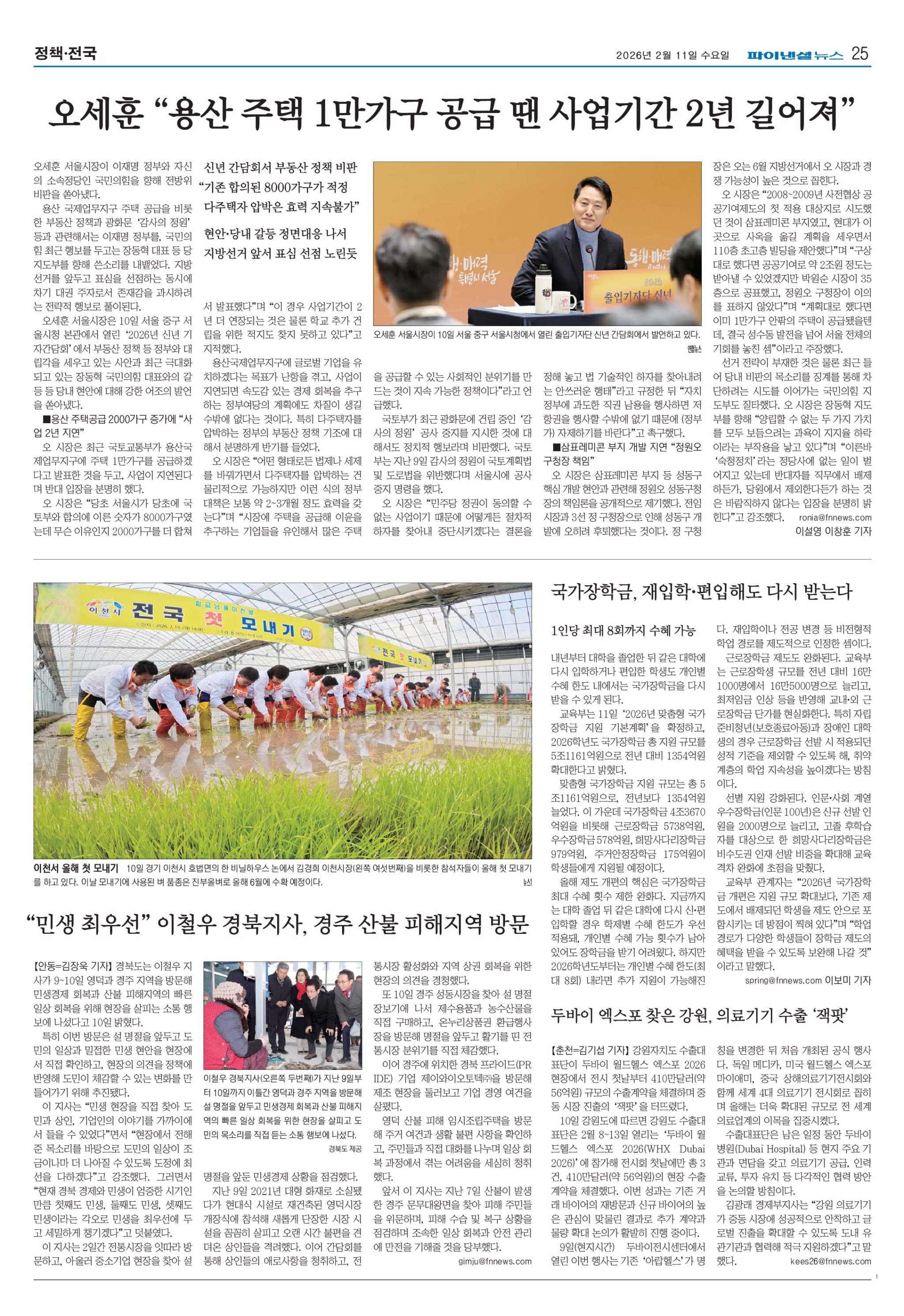 토요일은 인터넷판 신문만 발행되며 일요일은 신문이 발행되지 않습니다.
